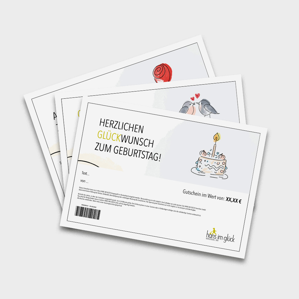 Verschenke Glück – mit unseren Glückskarten! Ob als Dankeschön, zum Geburtstag oder einfach nur so: mit unseren Glückskarten machst Du Deinen Liebsten immer eine Freude. Beim Erwerb erhältst Du einen Geschenkgutschein in einem Klappumschlag mit Platz für eine persönliche Widmung. Alternativ kannst Du Dich auch für einen digitalen Gutschein zum Selbstausdrucken entscheiden. Bei beiden Varianten: Einfach Deinen Wunschbetrag wählen und pures Glück verschenken.